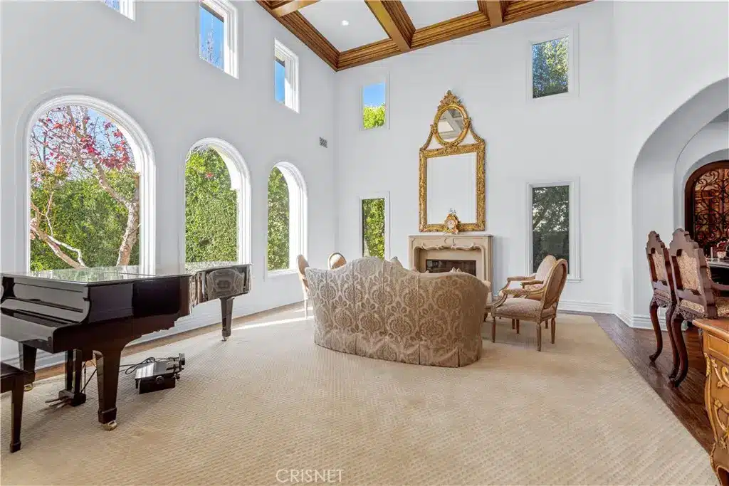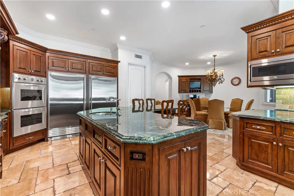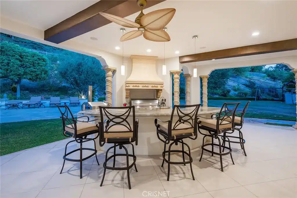 A 1550 square foot covered patio complete with fireplace and BBQ centre adds to this Calabasas Mediterranean Pool Villa estate’s remarkable list of amenities including a 4 car garage and motor court.