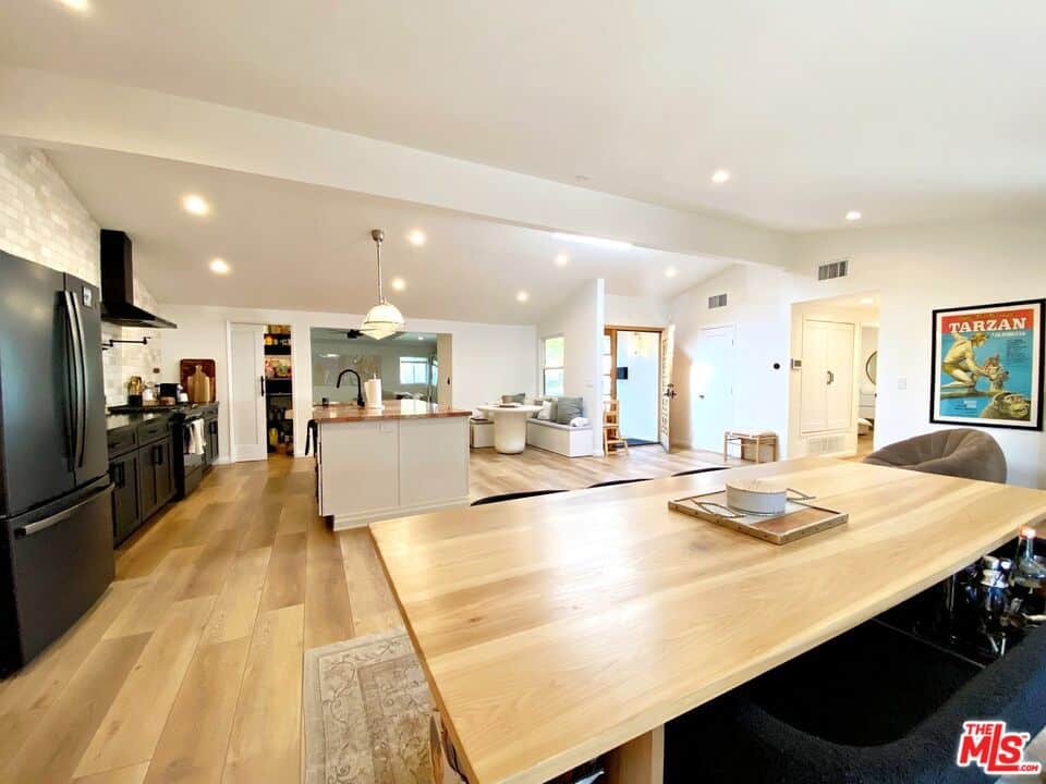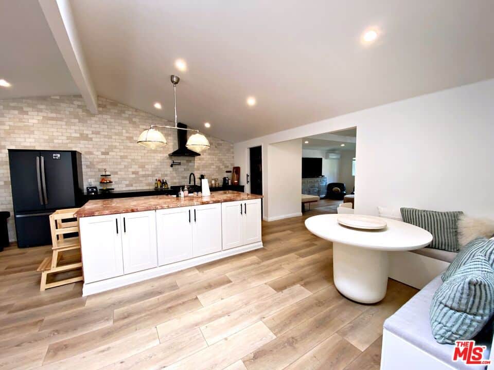Step inside this Contemporary Woodland Hills Pool Home and you’ll find vinyl flooring, an open chef’s kitchen that boasts an extra large island, marble & quartz countertops, two-tone custom solid wood cabinetry, matte black GE appliances and breakfast nook.