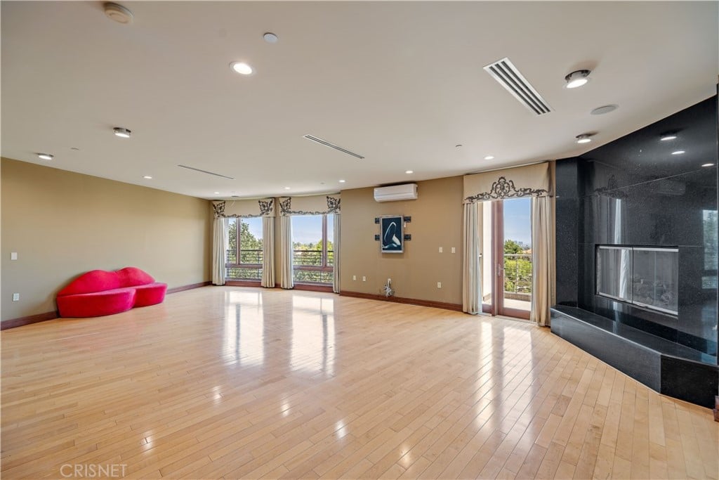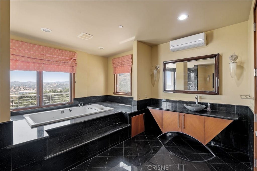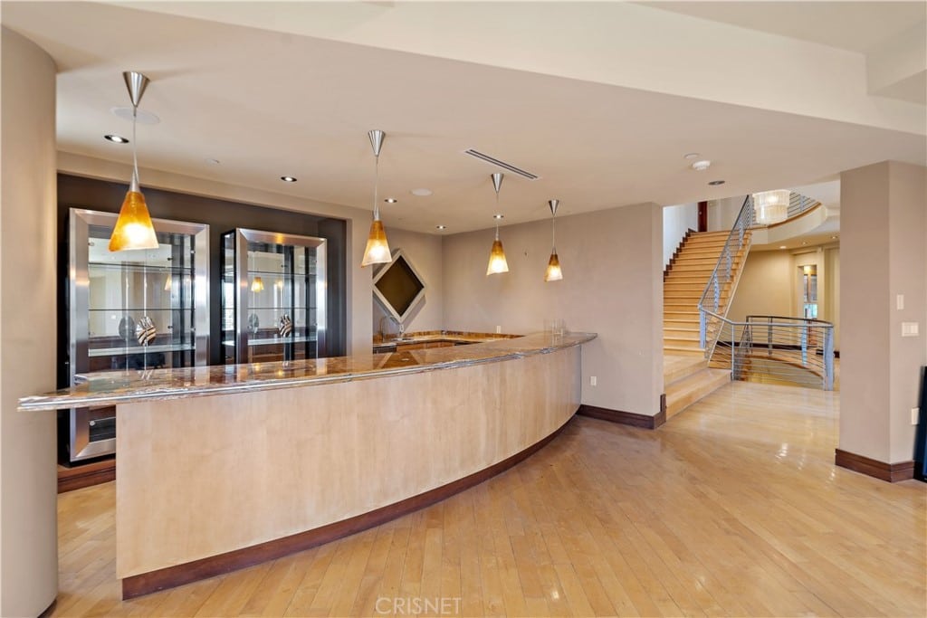 Modern, bright, and clean, it features hand-blown Murano Italian glass and French antiques. Views are expansive from nearly 270 degrees around this Calabasas Mansion.
