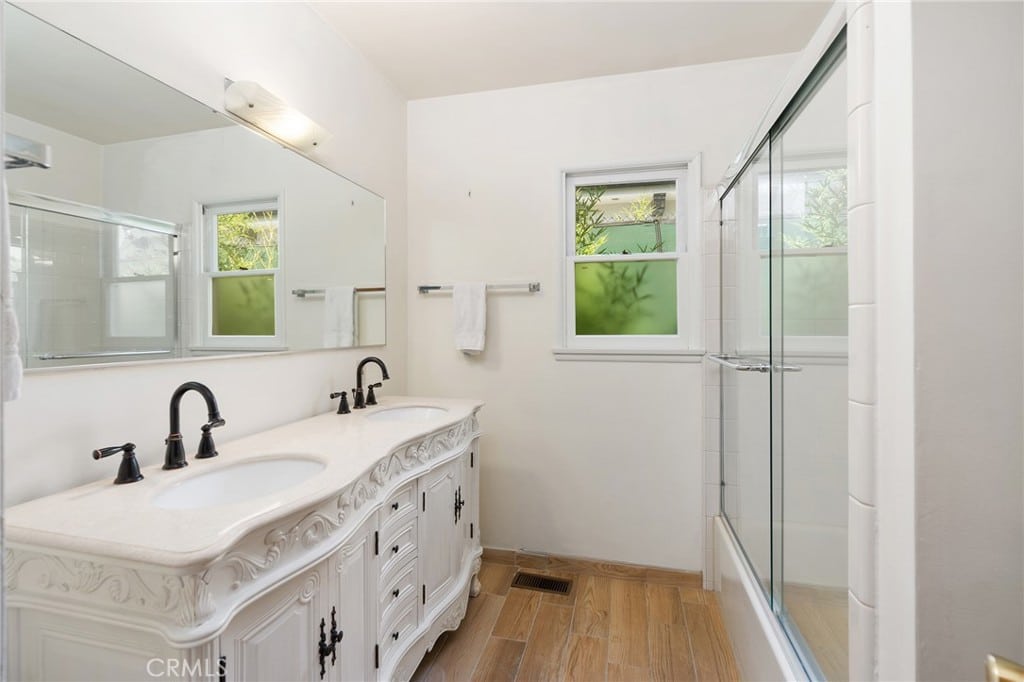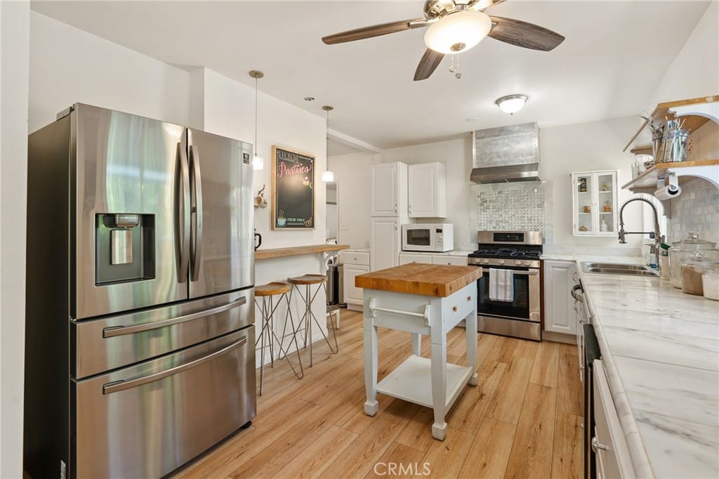Enjoy outdoor activities as well in the backyard featuring detached guest unit/pool house with bonus room, kitchenette and bathroom; large fenced-in pool; synthetic lawn; multiple covered patios – perfect for al fresco dining. Close to Woodland Hills Schools, Restaurants and the Warner Center.