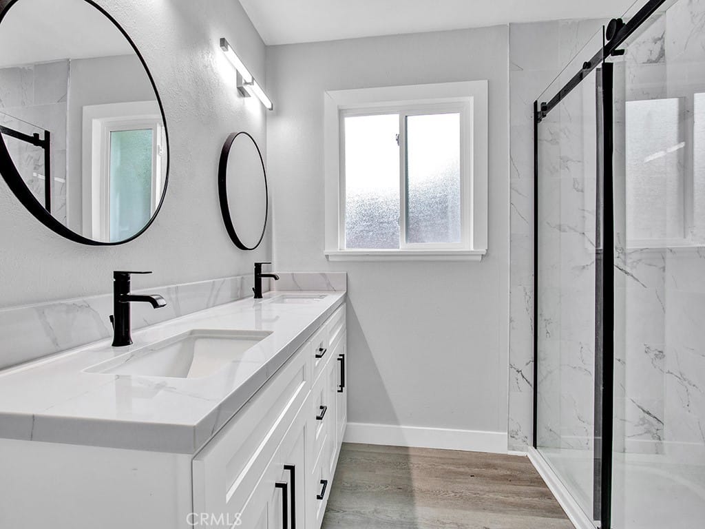 This home has been newly painted inside and out, has new flooring, and has been updated with new vanities and tiles in the bathrooms.