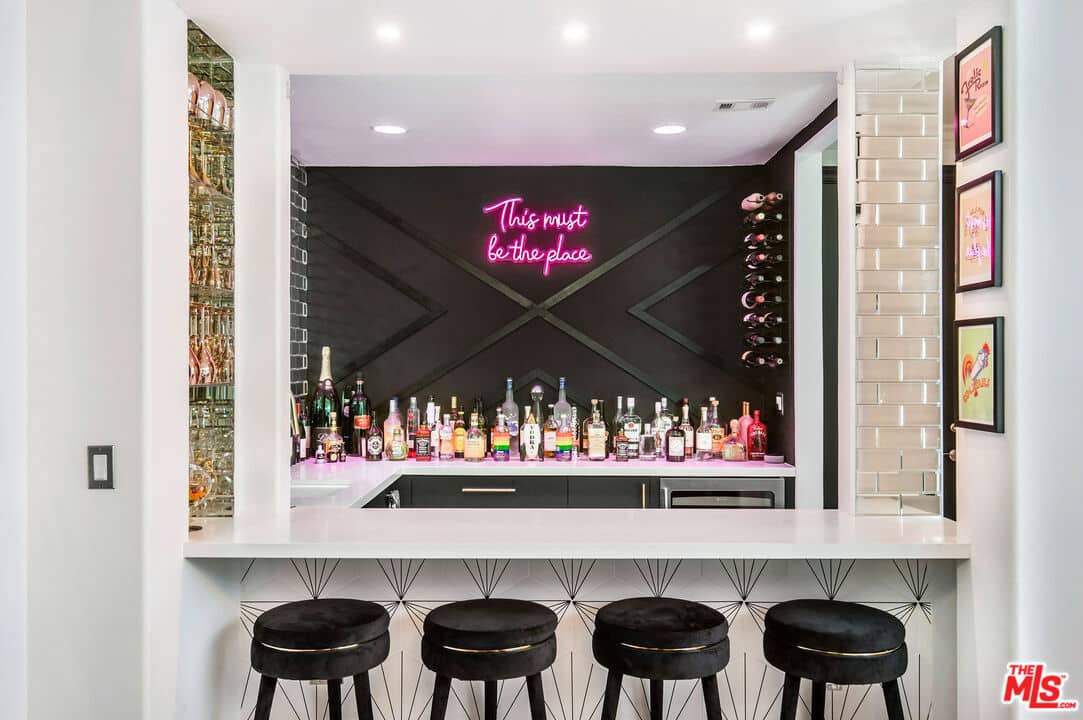 A bespoke entertainment bar and tasting lounge elevate the home’s appeal, making it ideal for hosting in style. A thoughtfully designed kids’ lounge offers a play area, fridge, ample storage, and entertainment options, creating the perfect space for family living. The lower level also features a private-entry en suite bedroom, perfect for guests or extended family.