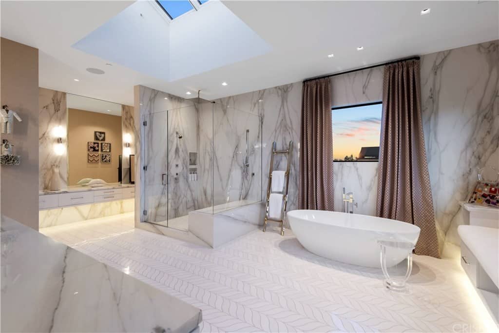 The grounds also boast a championship N/S tennis court, sand volleyball court, two firepits, outdoor kitchen and massive manicured lawns. Other amenities include garages for 10 cars, elevator, savant smart home system, 1800 square feet of covered patios and much more. The ultimate Southern California compound!