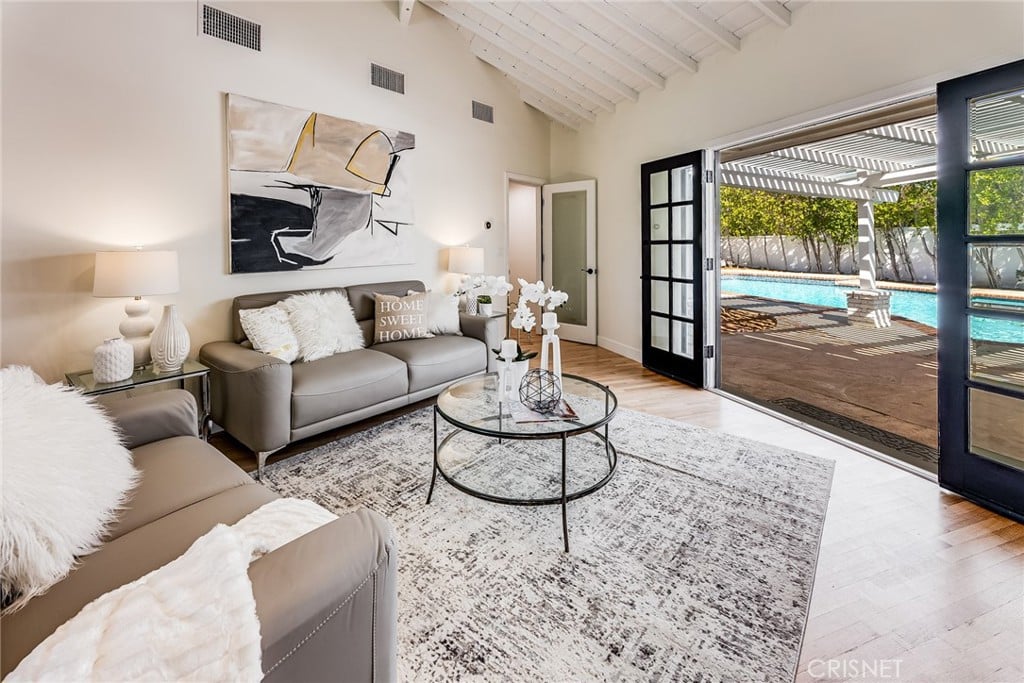 22431 Collins St Woodland Hills Pool Home is listed at $1.965 with 3 Bedrooms and 2 Bathrooms.