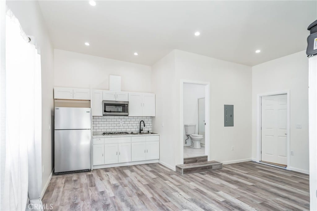 THE ADU was completed in 2023 with its own address, separate street entrance, electricity meter, spacious bathroom, kitchenette with granite countertops, stainless steel appliances (fridge, stove, microwave), Split AC unit, water heater, recessed lighting, and private patio for added comfort and security.