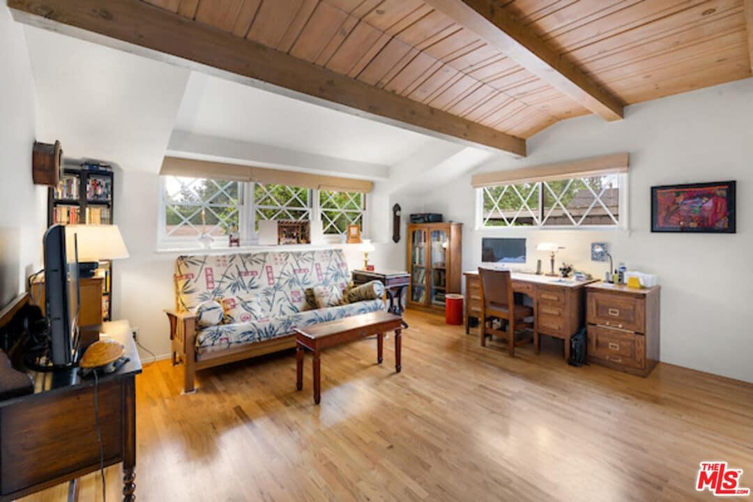 This stunning Woodland Hills pool property boasts three spacious bedrooms and two well appointed bathrooms, complete with gorgeous hardwood flooring and high beam ceilings.