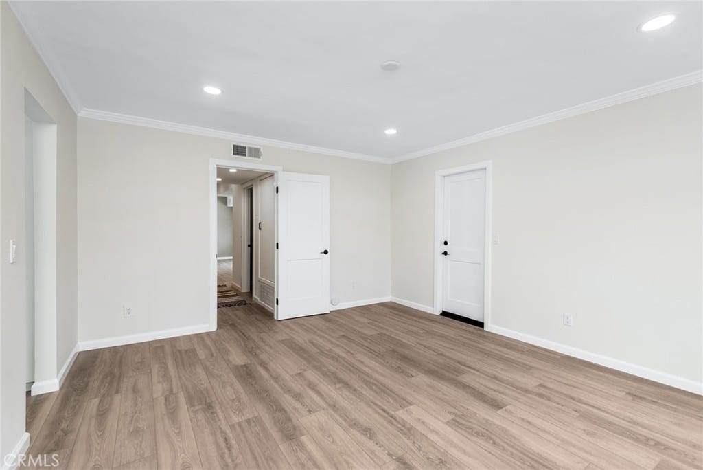 Completely remodeled with modern elements throughout, the interior boasts chic character through grey & white tones combined with gorgeous wood-style flooring, recessed lighting, dual pane windows, and a modern new front door.