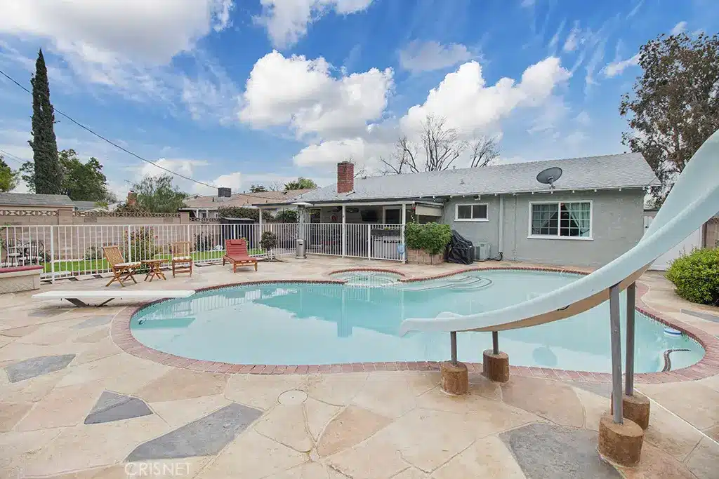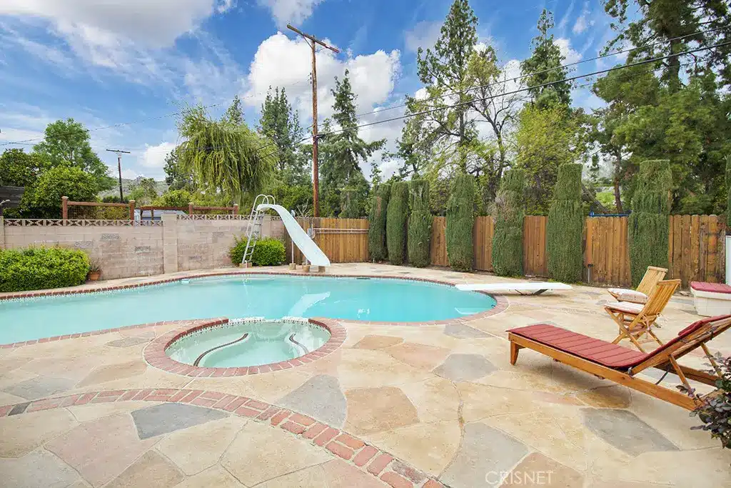 This three bedroom West Hills Pool home boasts charm and comfort. Relax at the covered patio while viewing this parklike garden/grassy area and its amenities.