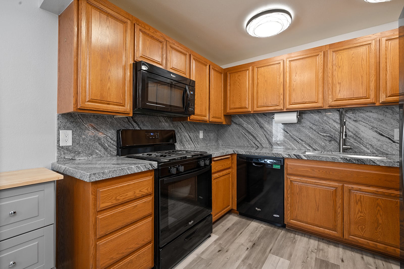 This home features new granite counter tops, vinyl and carpet flooring and an open layout.