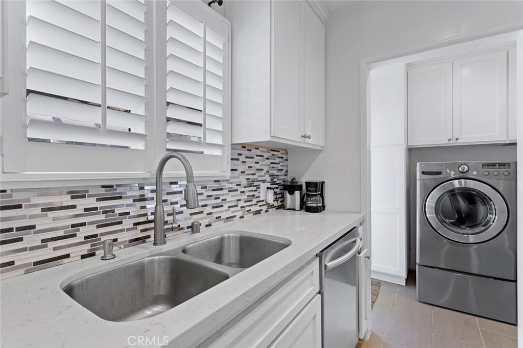 A dedicated breakfast area and separate dining room provide ample space for meals. The laundry room offers plenty of cabinet space and potential for conversion into another bathroom.