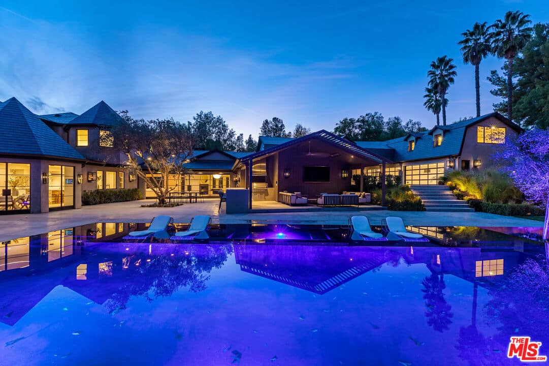 Among the amenities are steel & glass windows, wood & stone floors, and custom lighting fixtures. There is a big guest house, a zero edge pool & spa with lighted waterfall, a sports court, a deluxe covered barbecue area with space heaters and a T. V.