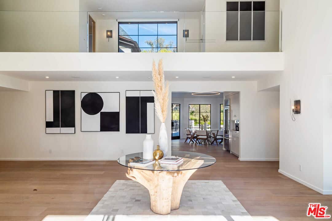 This estate is one of a kind. Located at 24051 Long Valley Rd in Hidden Hills, this newly completed house features high volume ceilings, sliding glass walls, and large picture windows that flood it with natural light.